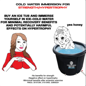 Chill out with the cryotherapy and ice baths. Unscrupulous health quacks are pushing ice baths more than ever for every benefit under the sun ranging from enhanced recovery, to longevity, to “insert outrageous claim here”. Unfortunately for these charlatans, these claims display a misunderstanding of the applicability to actual humans and a blatant disregard for the negatives associated with these practices.